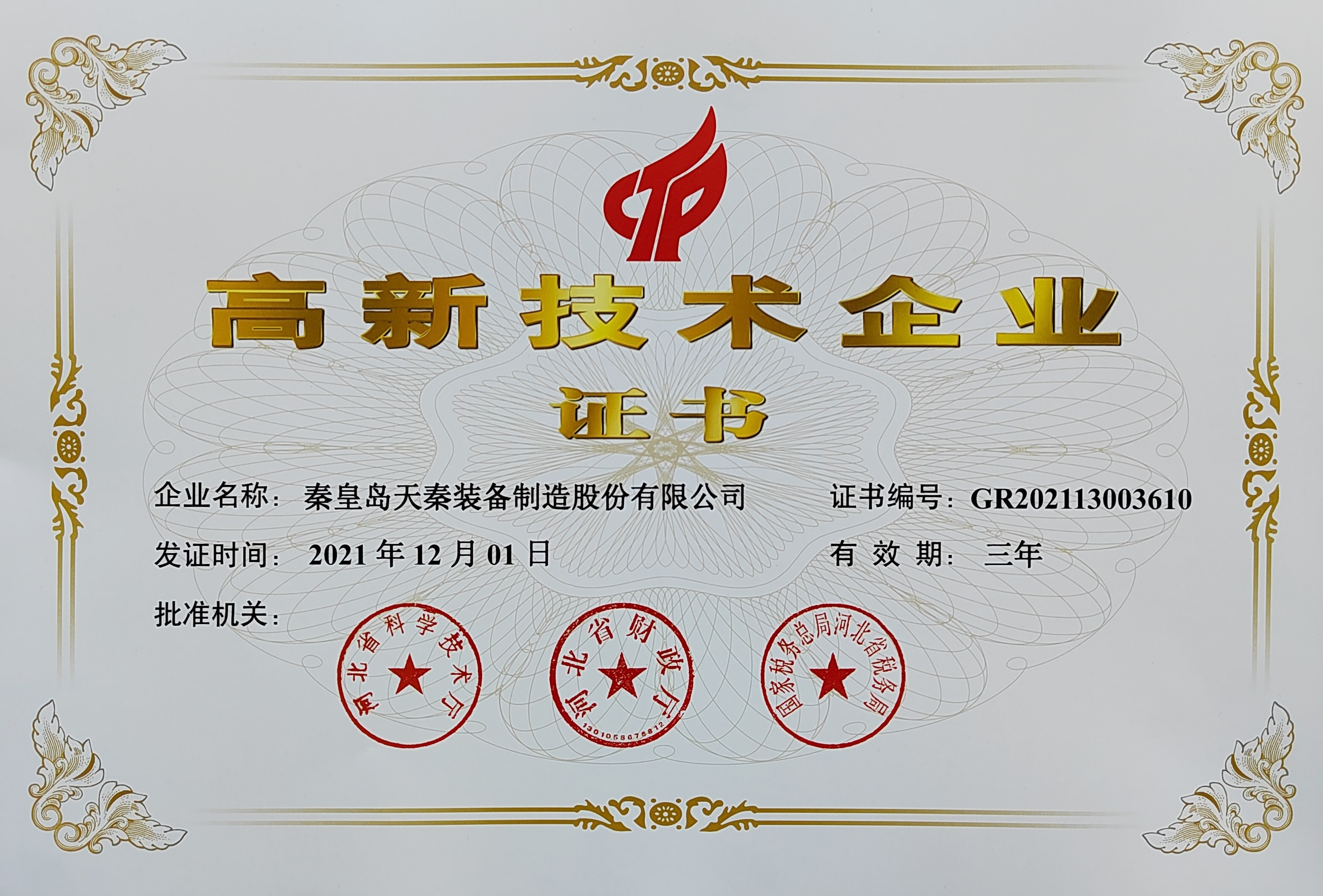 - 秦皇島天秦裝備制造股份有限公司創(chuàng)立于1996年,總部位于河北省秦皇島市經濟技術開發(fā)區,秦皇島廠區占地4萬平方米,擁有3萬平方米的標準廠房、辦公樓和工程技術研發(fā)中心;分部天津廠區位于天津市靜海經濟開發(fā)區,占地2萬平方米,擁有1.6萬平方米標準廠房。 公司通過了GB/T 19001質量管理體系及GB/T 24001環(huán)境管理體系認證,是國家高新技術企業、河北省軍民融合產學研用創(chuàng)建基地,建有省級院士工作站。